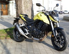 Unsere Honda CB750 Hornet für die Klasse A im Direkteinstieg ab Vollendung des 24. Lebensjahres oder Aufstieg von Klasse A2 nach 2 Jahren. Natürlich ebenfalls mit ABS. Bei diesem neuen Modell (2023) sorgen eine Anti-Hopping-Kupplung, Wheelie-Control, Überschlagschutz sowie eine Traktionskontrolle am Hinterrad für zusätzliche aktive Sicherheit.